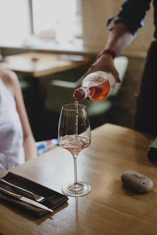 After uncorking the bottle, place the cork, wet side up, in front of the guest who ordered it. Pour a small portion for the guest and patiently wait for them to nose, swirl, and sip it. You can start pouring for the table once it has been approved.